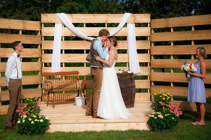 Scott and Jill had a beautiful Minnesota farm wedding, complete with a red barn, a family built ceremony backdrop, and a goat named Daisy!  It was  beautiful, unique wedding!  I even found a frog to place in one of the ring pictures!  It took some time to get him to stay- but he sat on a beautiful box made of wood used to carry the rings (it was also the same box Scott used to propose).  But better than all of those things- the ceremony was held at Jill’s parent’s farm.  The very same farm that her parents got married on years before!  All of it made a perfect backdrop for this beautiful day.  From getting ready at their farm house, to a ceremony by the lake (with a gorgeous orange sunset), to sparkler exit to end the night, I couldn’t have asked for a better day.  Thank you so much Scott and Jill for letting me be apart of your wedding!  I loved every minute of it and I’m excited for your marriage ahead!  It will all be beautiful.